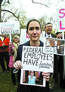 2011年4月8日,美国联邦政府面临关门风险,联邦雇员抗议政府关门。 新华社资料照片